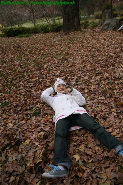 剛好有個攝影老師帶學生在拍落葉,amy就被抓去當model了。