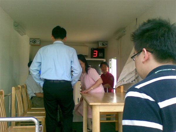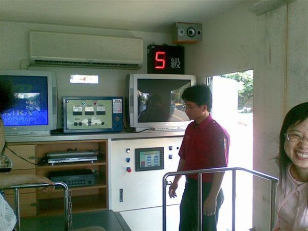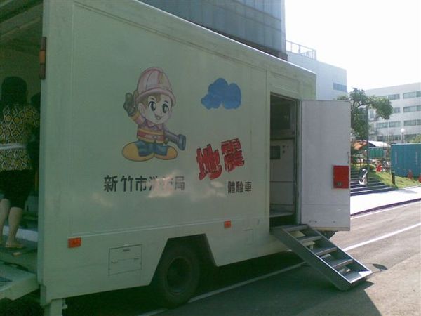 先來坐地震車體驗。外型好像是X光巡迴車喔。