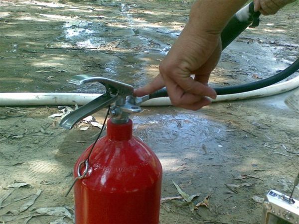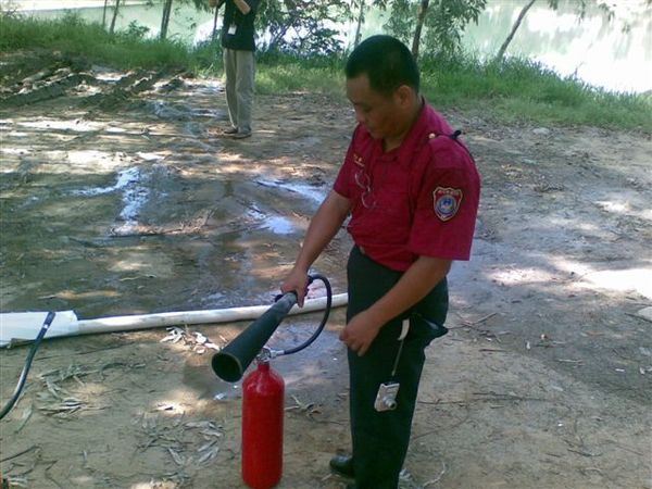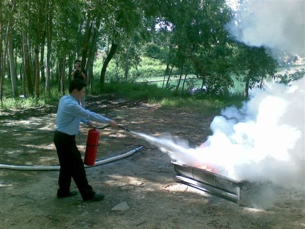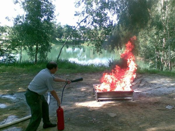 這是同事A的滅火英姿。嗯,是位左撇子同事。