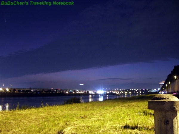 ㄧ路往圓山騎,照片裡基隆河那ㄧ岸天空的亮點是正在降落的飛機。