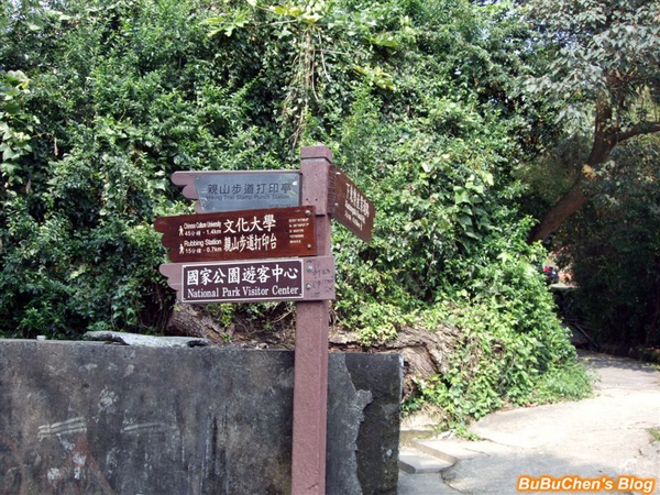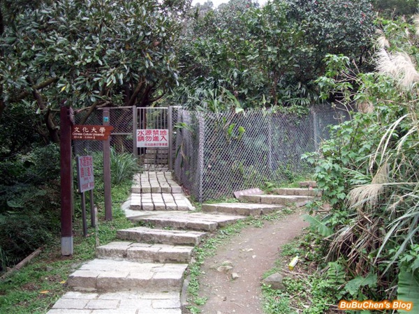過了涼亭來到一岔路,直走通往文化大學後方的道路,而左轉還是水管路部道。