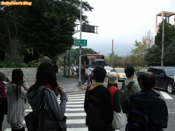 由於今天是春節假期的最後一天,又是假期裡難得的好天氣,陽明山上都是賞花的遊客,所以公車班班爆滿,根本無法擠上公車,我們決定走路下山。當我們走到格致中學時,