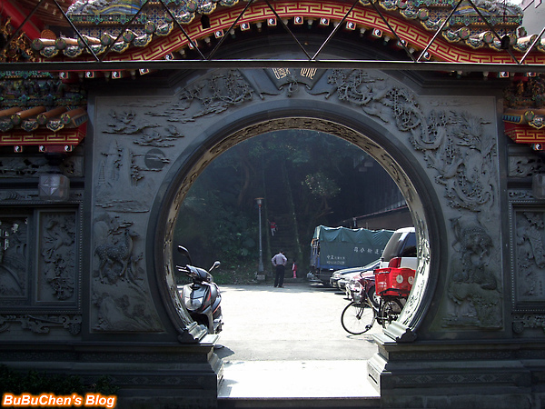 我們沿著柏油路往南天宮(N25 02.001 E121 35.208)的方向走,準備走虎山溪步道下山。虎山溪步道口就在南天宮的牌樓旁。