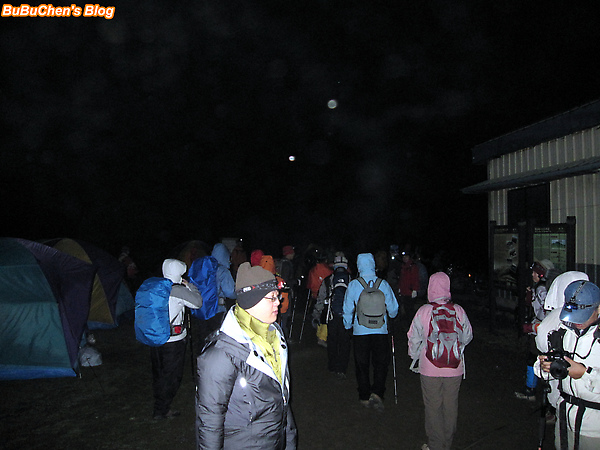 凌晨三點半起床,整理裝備,並吃著天池山莊的清粥小菜早餐。在凌晨四點,出發前往奇萊南峰、南華山囉。