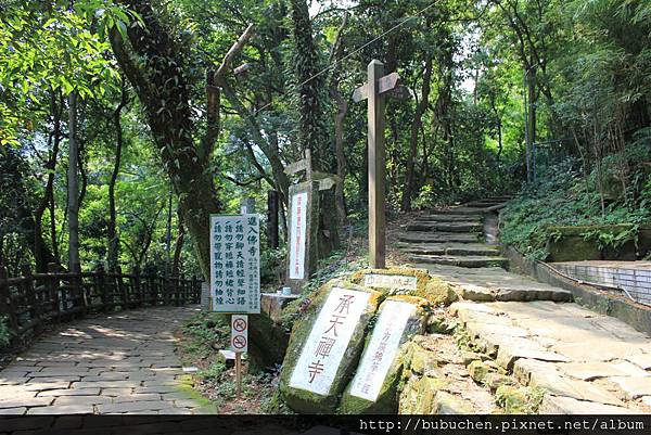 來到承天禪寺步道口,基本上繼續走馬路或走這承天禪寺步道皆可往天上山,但走登山步道有趣多了。承天禪寺又叫賞鳥步道,也叫廣親欽紀念步道,是紀念承天禪寺開山祖師廣欽老和尚。