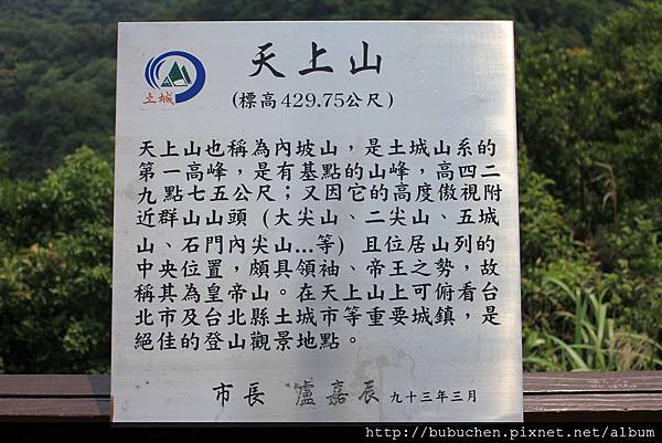 天上山頂的解說牌。