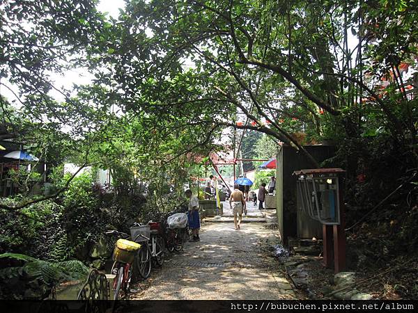 離開涼亭我們選擇往福德街221巷走,接上柏油路後繼續前往南天宮的虎山溪步道口。